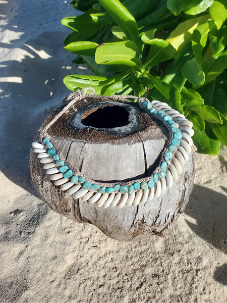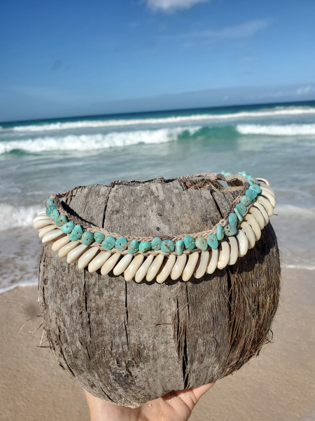 Beaded Choker with Amazonite Beads and Cowrie ShellsMermaid Choker, Beach Jewelry, Eclectic Boho Choker NecklaceMy original design, handcrafted with love.The choker measures 13" and has adjustable ties